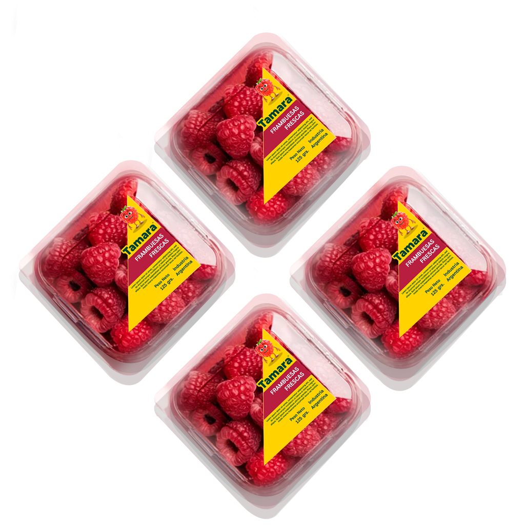 Frambuesas seleccionadas en 12 cubetas de 125 grs, marca TAMARA®