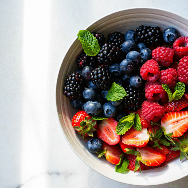 Ensalada fresca de frutas del bosque con menta ARANDANOSFRUTILLA Ensalada fresca de frutas del bosque con menta